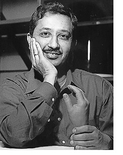 | Research Scientist Mandayam Srinivasan, shown here holding the model of a hand, probes both our sense of touch and robotic systems that take advantage of that sense. (Photo: Ed Quinn) |